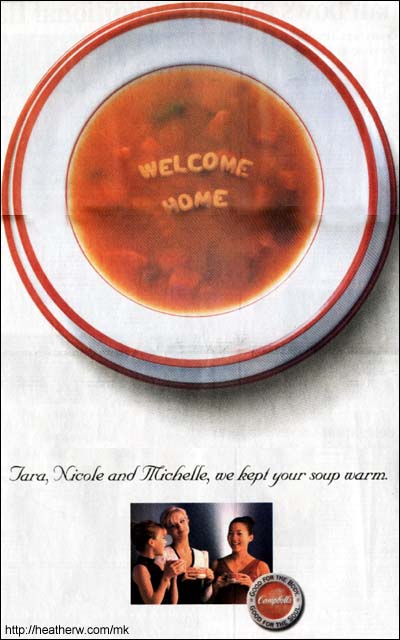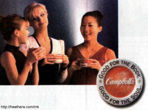 a person on its soup label. A commercial was filmed with the