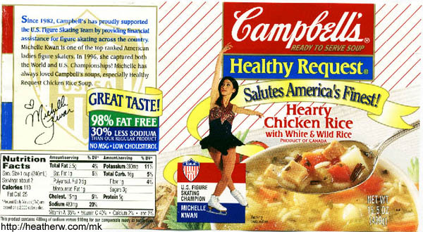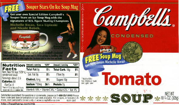 the tomato soup red-and-white can, and the chicken rice Healthy